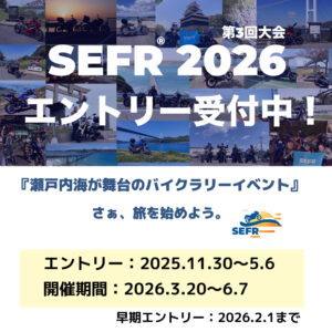 瀬戸内海周辺に設定されたポイントの、「規定時間内」「規定数以上」の通過を目指すバイクラリーイベントです。